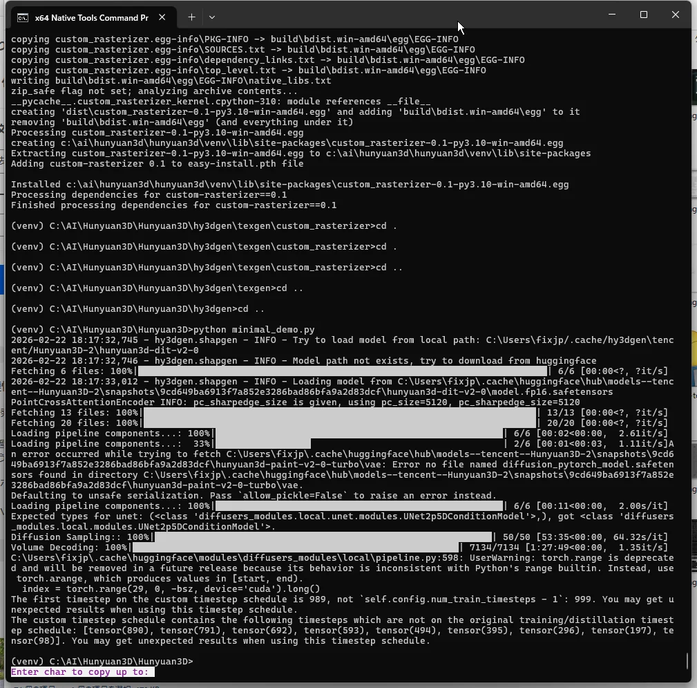 Windows環境で Hunyuan3D(ShapeGen + TexGen)を完全に動作させるまでの手順とトラブルシュートをまとめた。