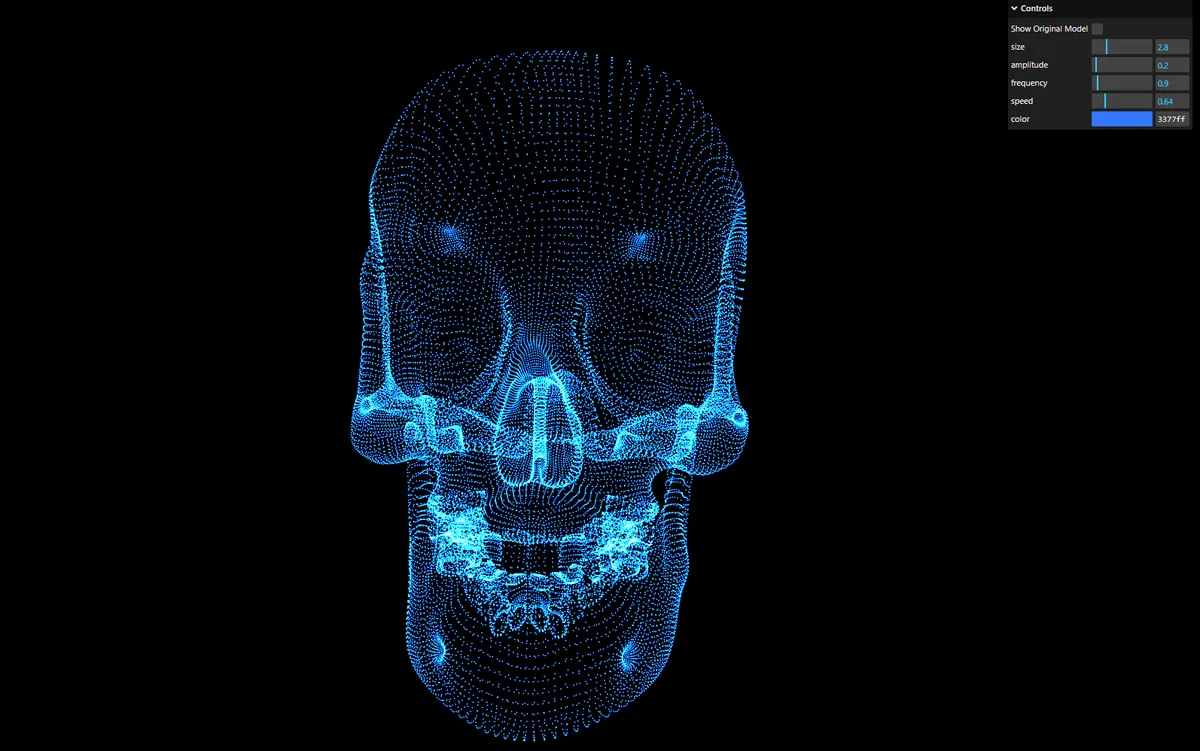 3Dモデルを PointCloud 化して GLSL 揺らぎを追加するデモ#threejs #javascript #glsl #shader #lil-gui