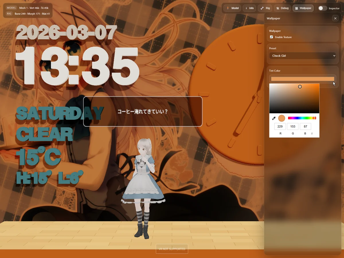 実際、ここまで来ると「時計アプリ」というより、 キャラクター付き 3D デスクトップ空間に近い方向へ伸びてきた感じがあります。