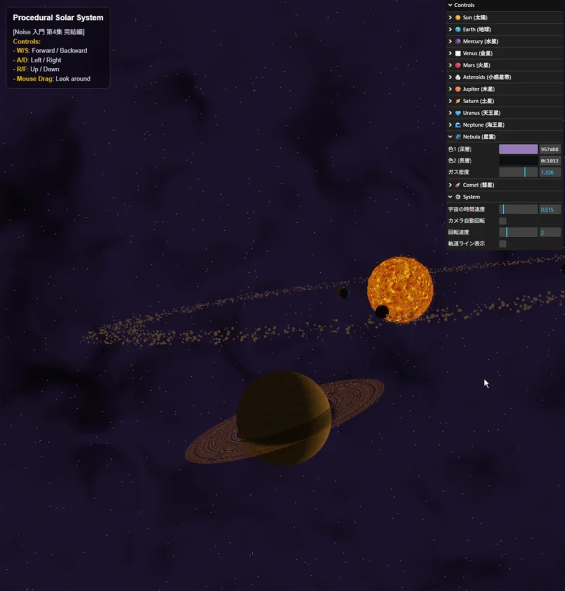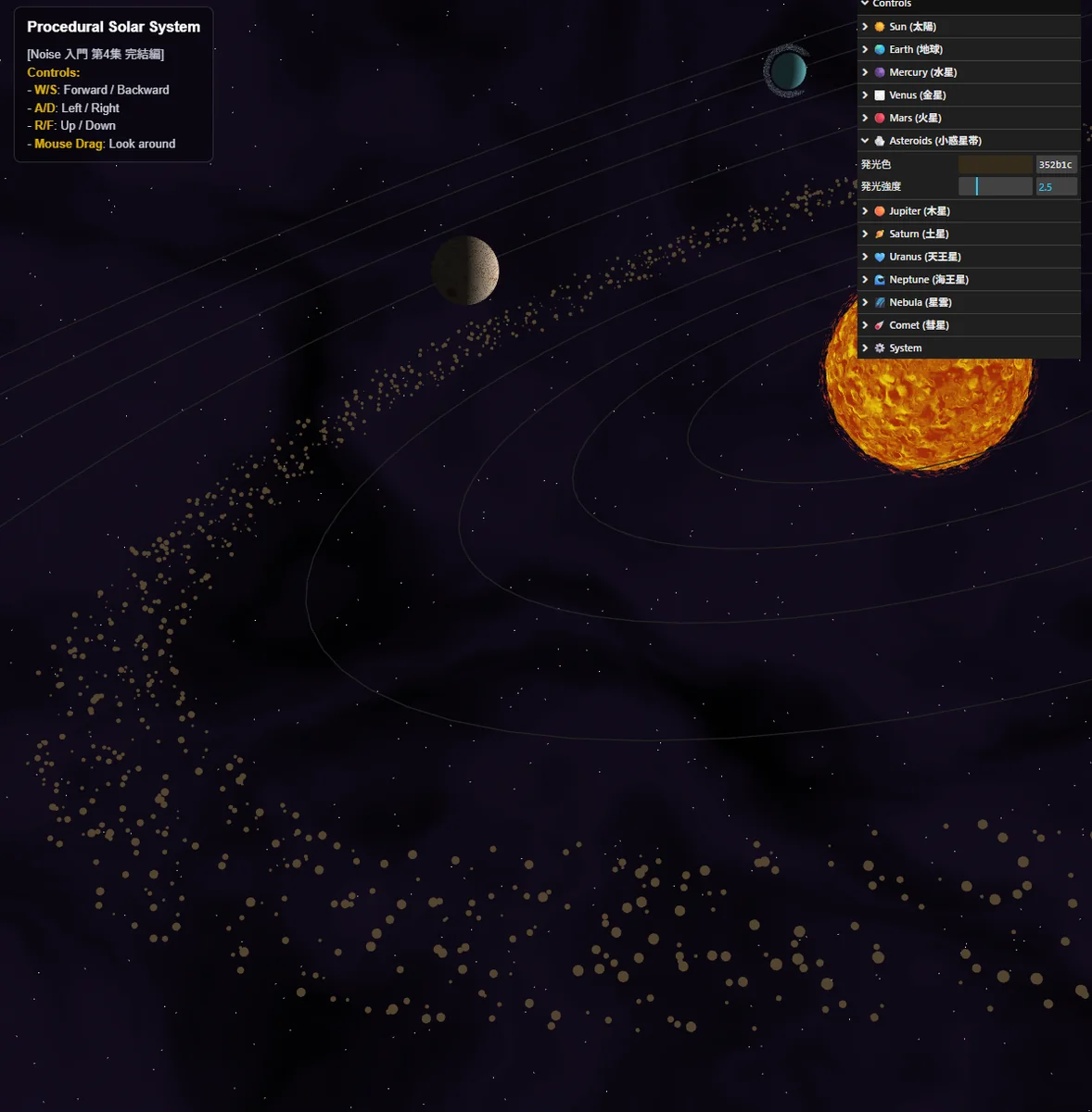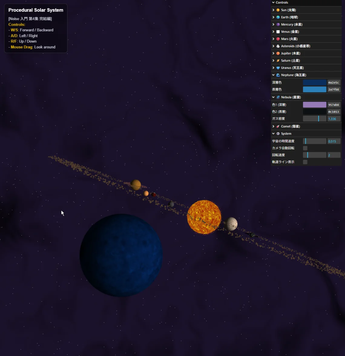 [Noise 入門 #40] 第4集完結 — 太陽系を錬成する(Procedural Solar System)