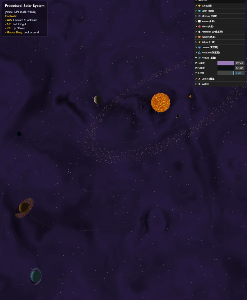 Three.js × GLSL| ノイズだけで描く、「太陽系全惑星」と「星雲」