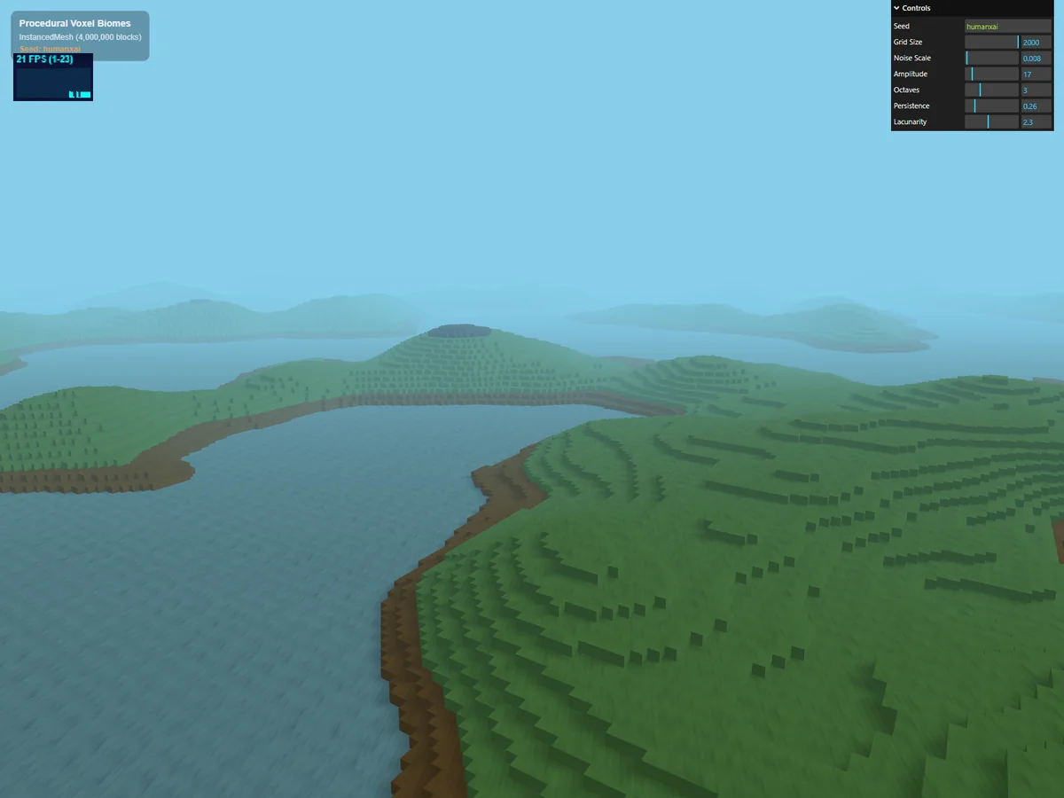- 情緒的な風景(バイオーム): setColorAt と C64 風のレトロパレットを組み合わせ、ボクセル特有のドット感を活かした独自の美学を表現しました。