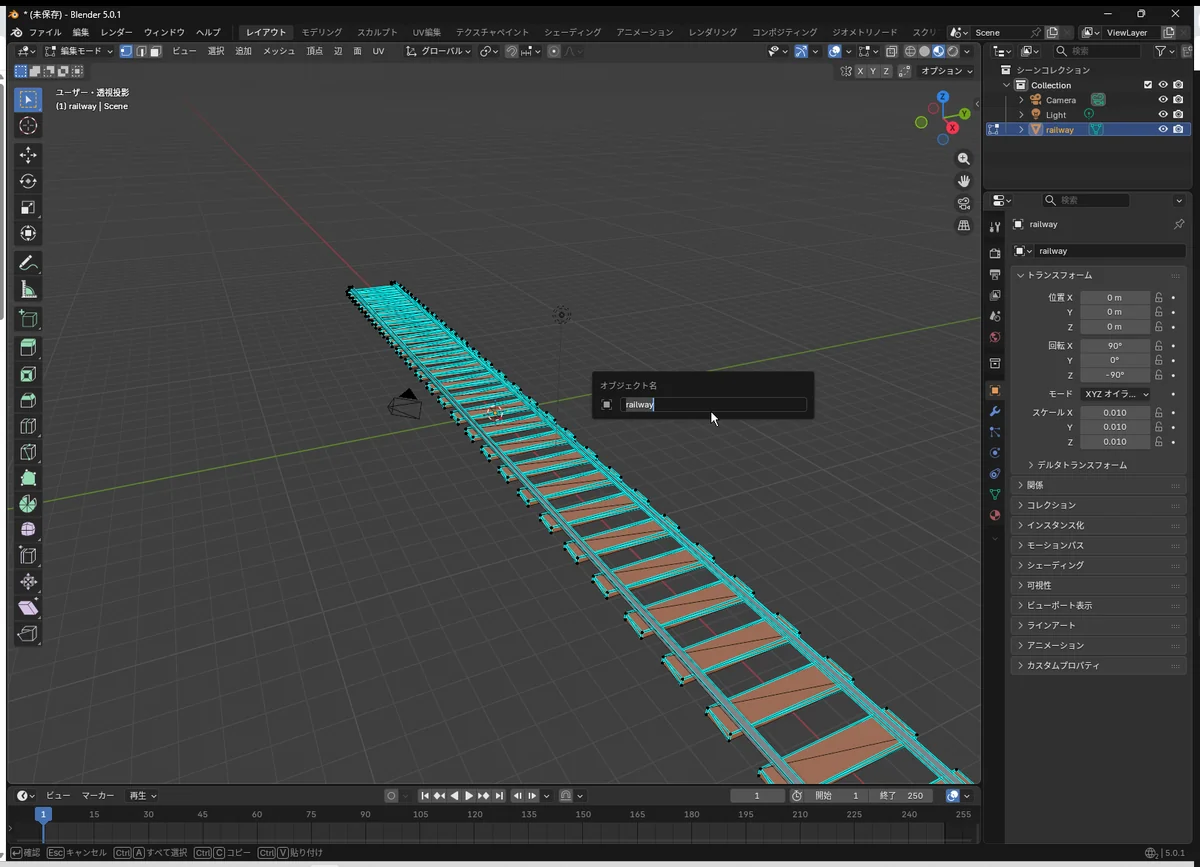 - Blender と Unity を往復してレールを正しい比率で加工し