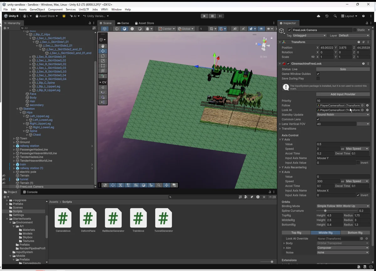 Unity6 では古い “ThirdPersonFollowCamera” は廃止。 代わりに FreeLook Camera が TPS 用。
