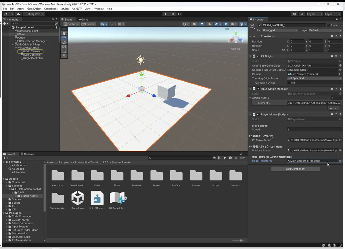 - XR Interaction Toolkit: (Starter Assets インポート済み)